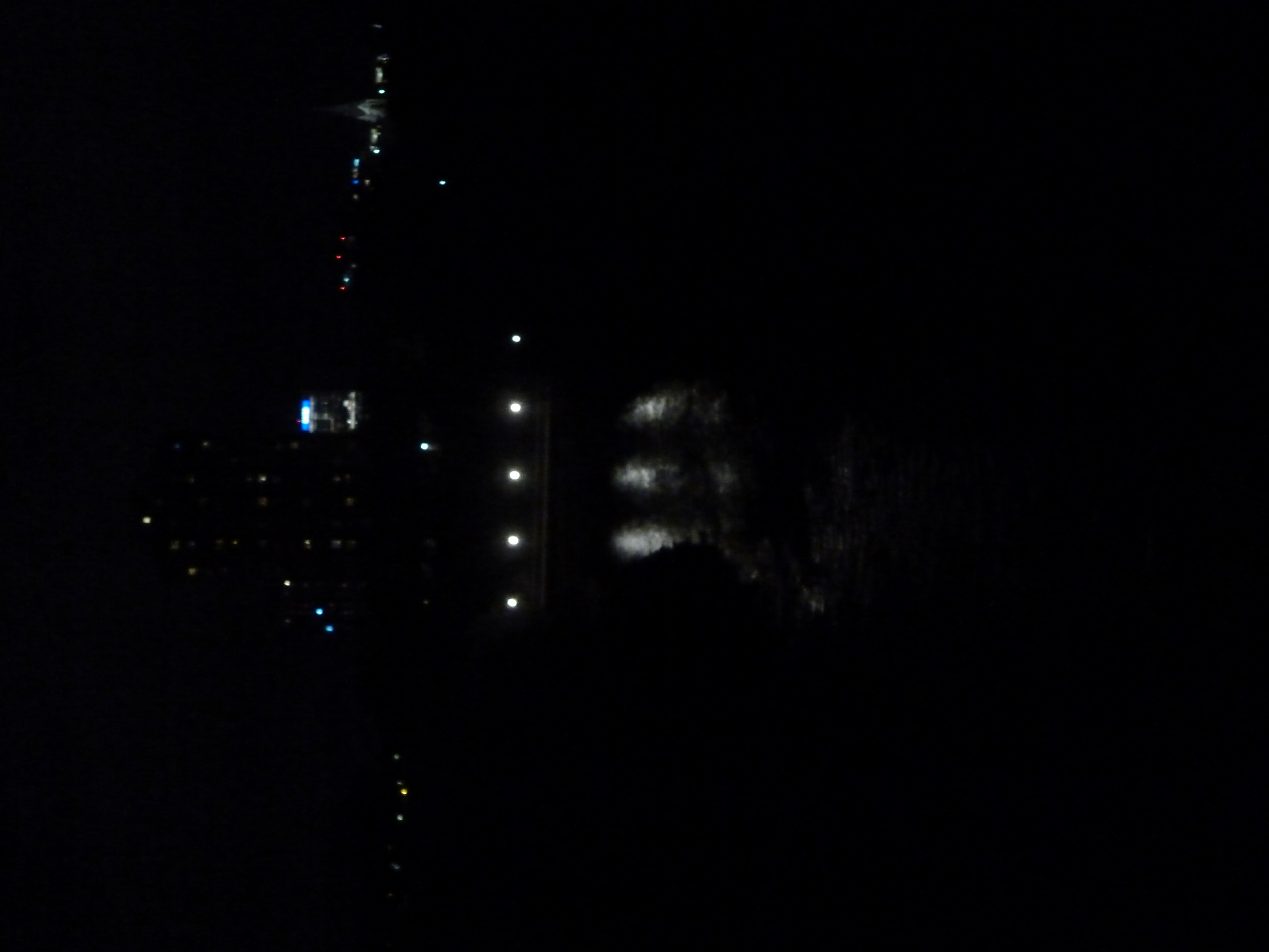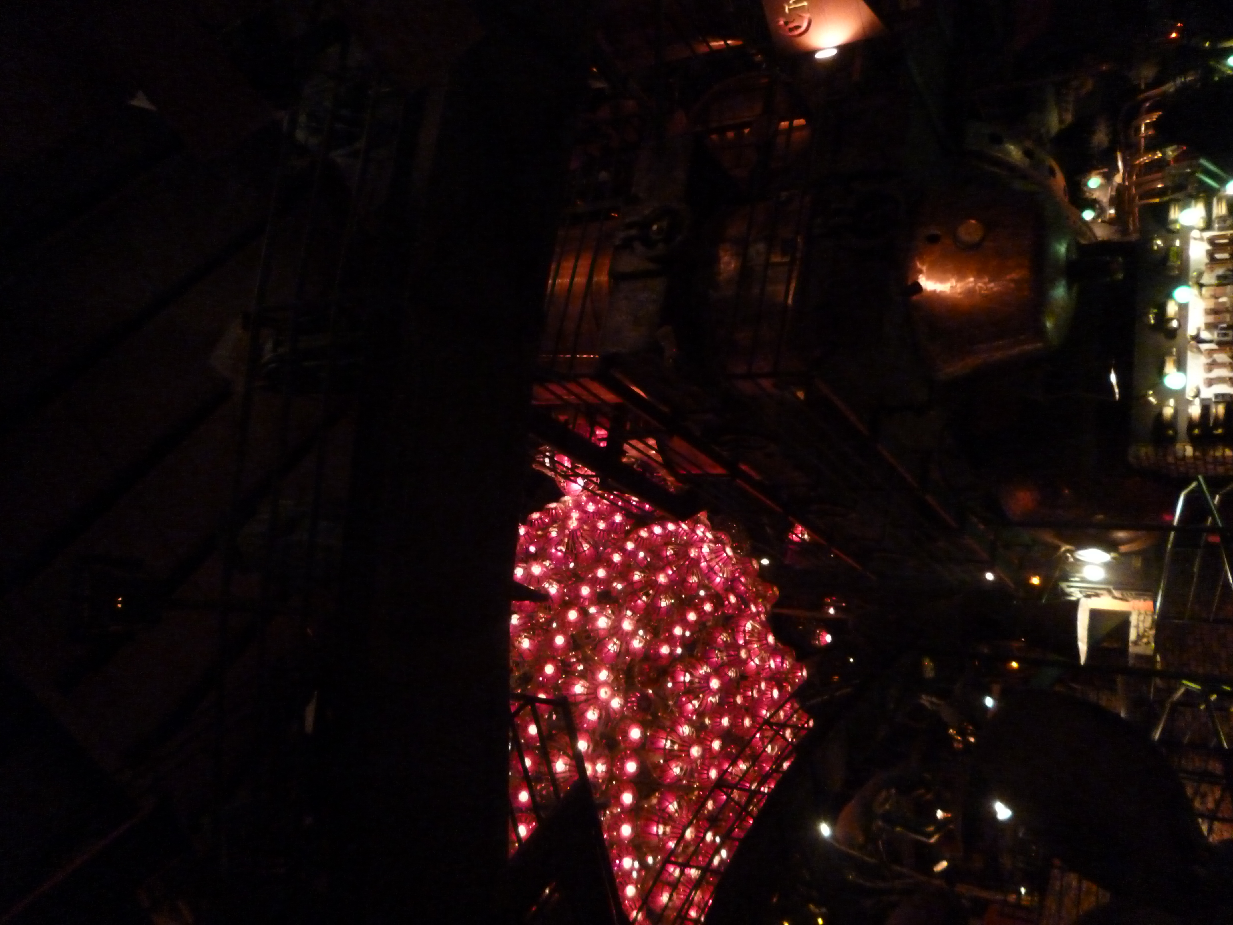 Interesting light reflecting from the pedestrian bridge as seen from the car bridge.